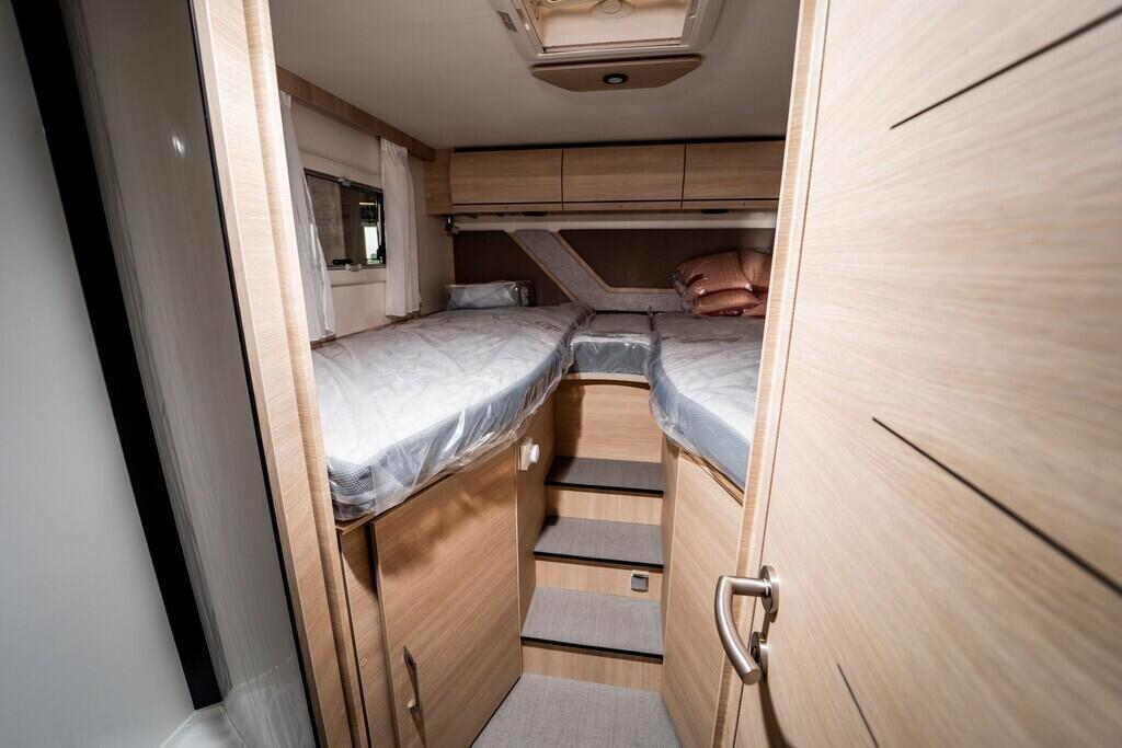 zadní podélná lůžka 2x 85 x 205cm s možností rozkladu na dvojlůžko 137 x 206cm, přední spouštěcí dvojlůžko 140 x 191cm.