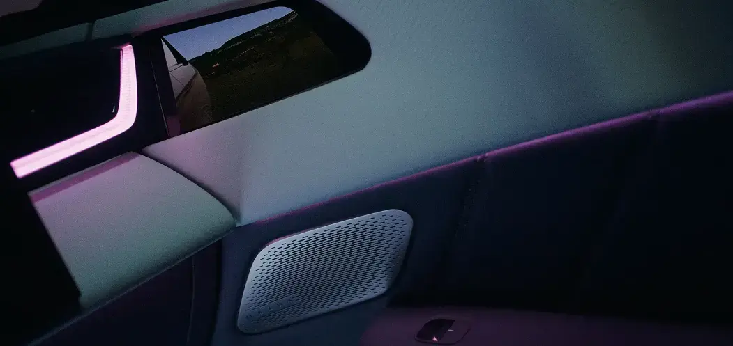 Špičkový audiosystém s výkonem 1 280 W je díky 23 reproduktorům zárukou bohatého a čistého zvuku na každém sedadle. Reproduktory Bluetooth®⁴ v hlavových opěrkách předních sedadel vám umožňují přizpůsobit si poslech, takže řidič a spolujezdec mohou samostatně poslouchat svou oblíbenou hudbu, zatímco cestující na zadních sedadlech si mohou užívat ticho. Pro zábavu venku je k dispozici dokonce i 20W externí reproduktor.