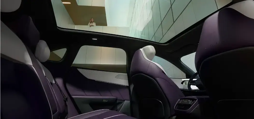 Aby byla kabina zaplavena přirozeným světlem, je zcela nová Mazda CX-6e vybavena panoramatickým střešním oknem s izolačním vrstveným sklem. Standardní výbavou je rovněž automatická sluneční clona, kterou lze v případě příliš intenzivního slunečního světla zavřít. Elegantní střešní linie udržuje příjemnou atmosféru zaměřenou na řidiče, aniž by ale bylo obětováno pohodlí ostatních cestujících.
