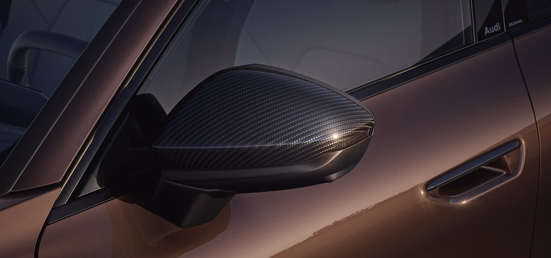 Kryty vnějších zpětných zrcátek z uhlíkových vláken z originálního příslušenství Audi vytvářejí výrazný kontrast k laku vozidla a dodávají vašemu novému Audi A6 Avant ještě dynamičtější vzhled.